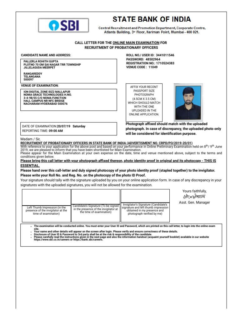 Sbi Po 2020 Admit Card Exam Centers Exam Day Instructions